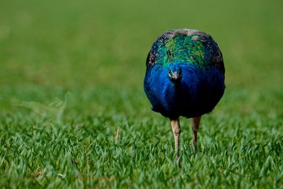 Da der Pfau ein ortstreuer Vogel ist, gibt es kleine Bestände, die frei leben und nicht vom Menschen eingesperrt werden. Ich hatte bei einem Spaziergang das Glück, Pfaue auf offenem Feld zu treffen. Vorsichtig und langsam näherte ich mich - sie erfassen alles sofort und reagieren mit erhöhter Aufmerksamkeit.